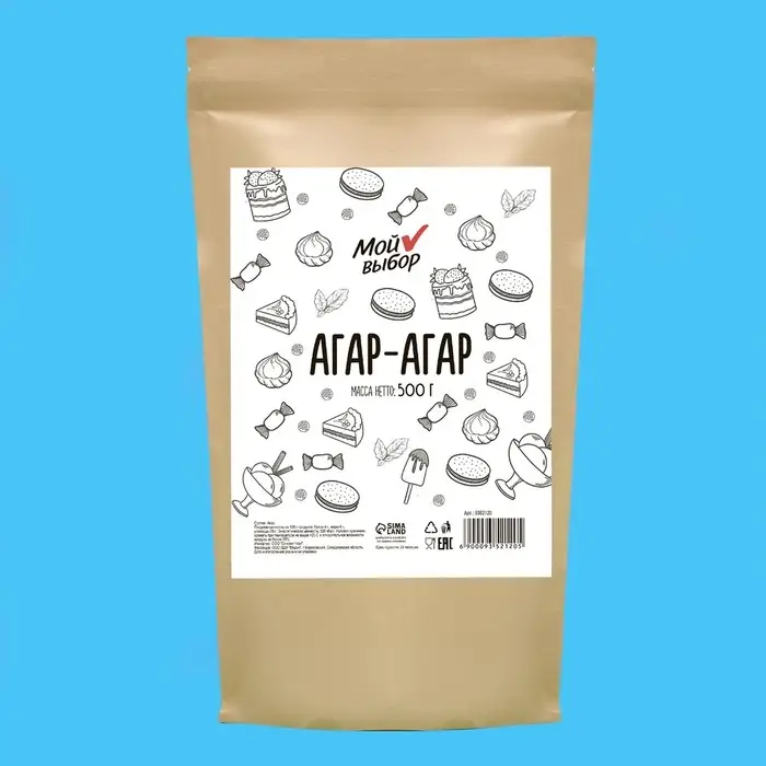 Агар-Агар - это растительный заменитель желатина, который добывается из водорослей. Используется в кулинарии при приготовлении мармелада, зефира, желе, суфле, мороженого, а также мясных и рыбных заливных блюд. Внимание!!! Желирующие свойства агар-агар почти в 5 раз эффективней обычного желатина.