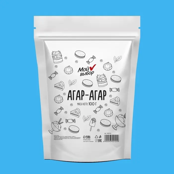 Агар-Агар - это растительный заменитель желатина, который добывается из водорослей. Используется в кулинарии при приготовлении мармелада, зефира, желе, суфле, мороженого, а также мясных и рыбных заливных блюд.Внимание!!! Желирующие свойства агар-агар почти в 5 раз эффективней обычного желатина.