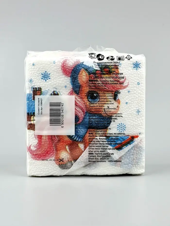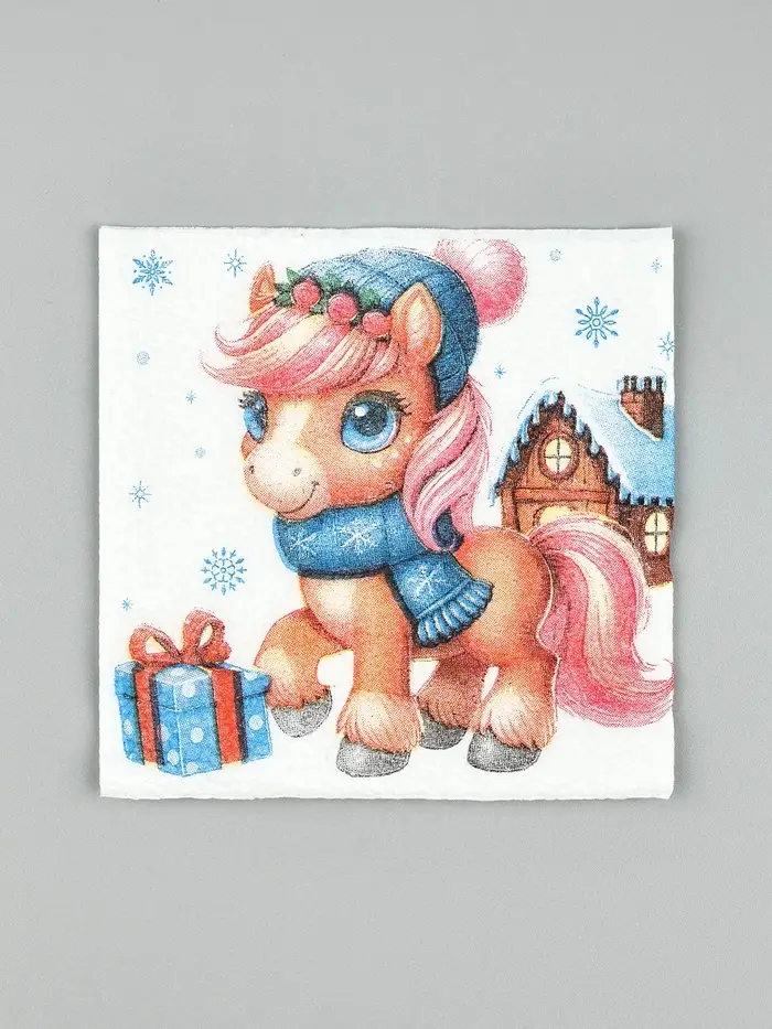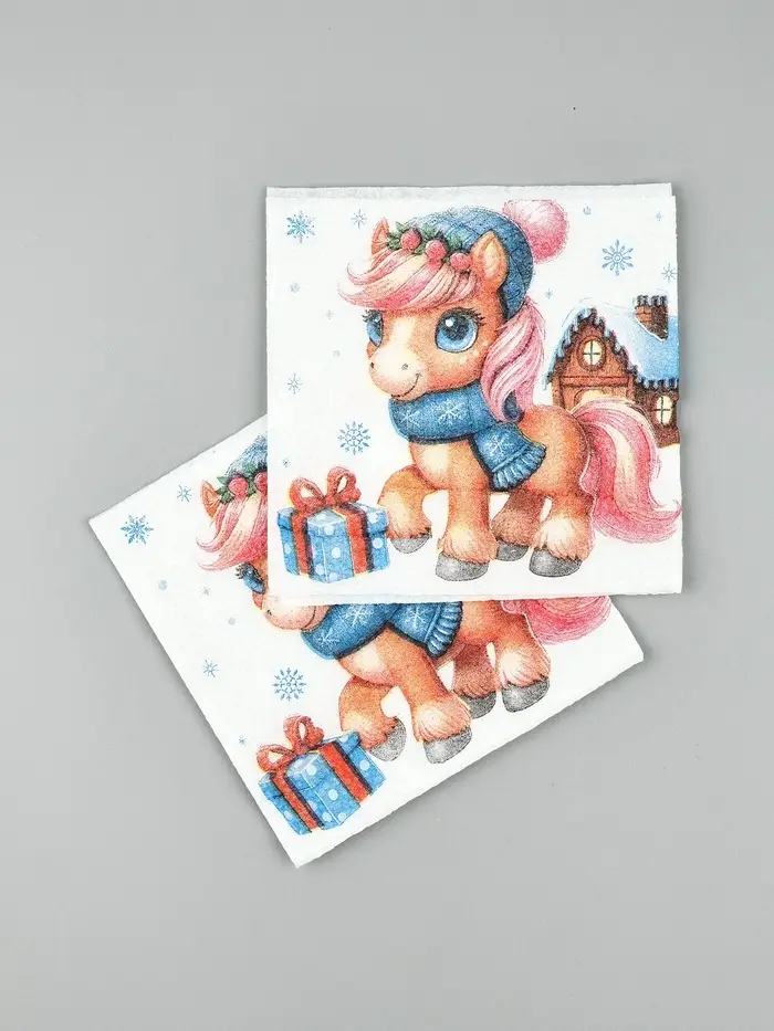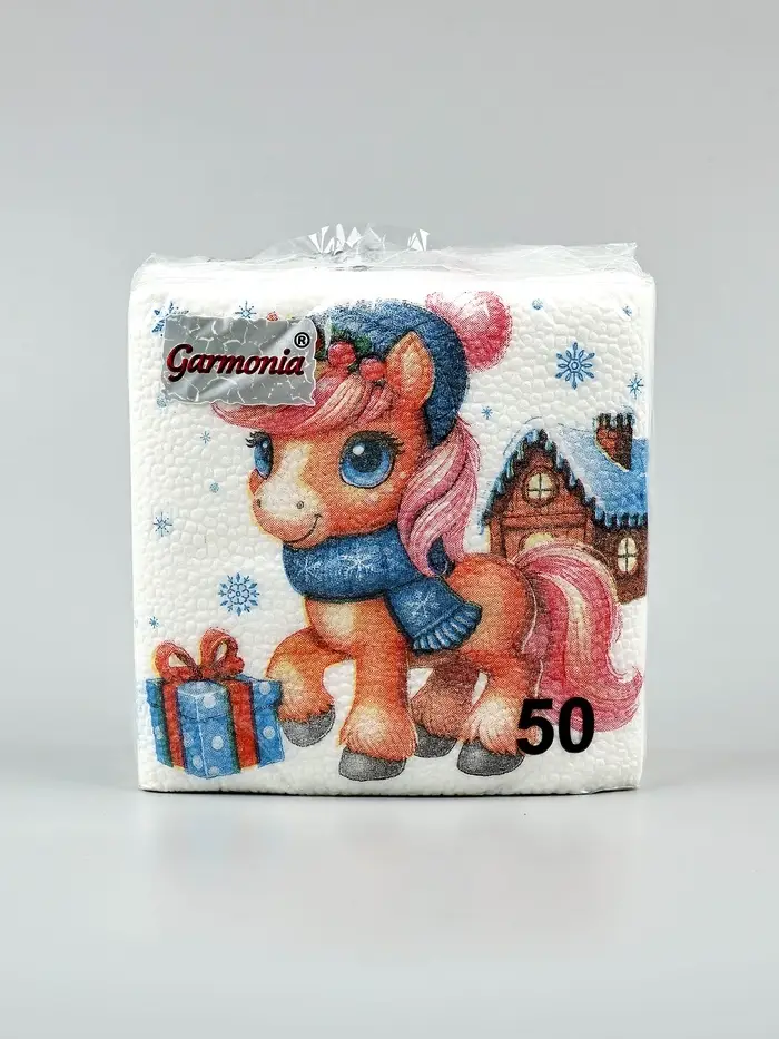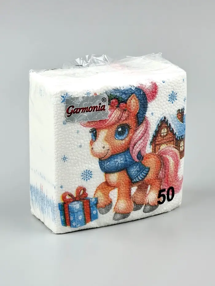 Салфетки бумажные Гармония цвета многоцветие "Лошадка с подарками", 24*24 см 50 листов
