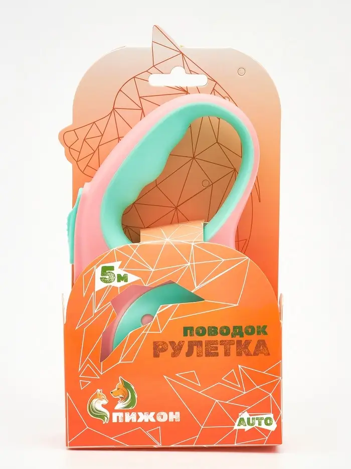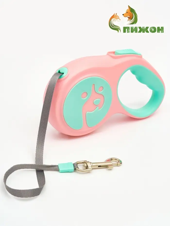 Рулетка - поводок для собак, лента 3 м, розовая/мятная