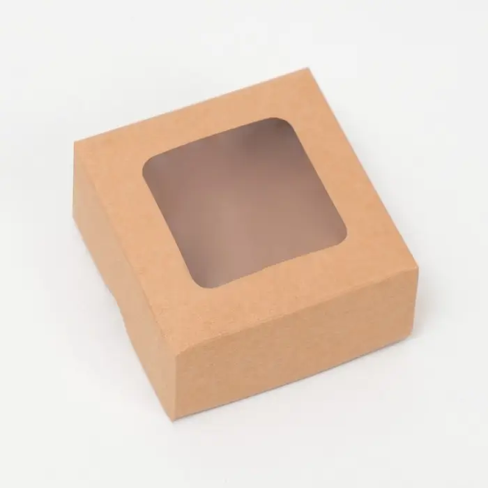 Коробка складная, крышка-дно, с окном, крафтовая, 8 х 8 х 4 см