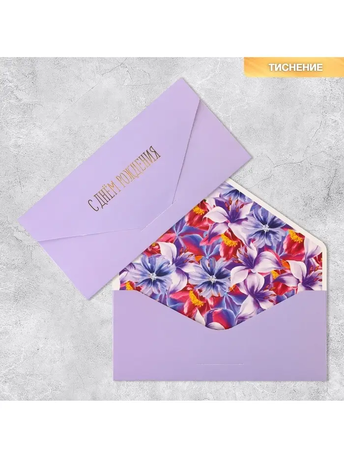 Конверт подарочный «С Днём рождения», софт тач, тиснение, 19 х 9 см