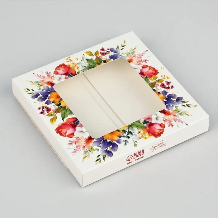 Коробка для шоколада квадратная «Цветы», 10.2 х 10.2 х 1.4 см
