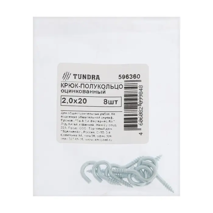 Шуруп-полукольцо ТУНДРА, для дерева, оцинкованный, 2x20 мм, 8 шт