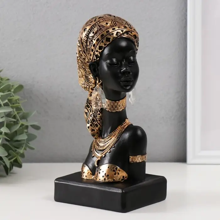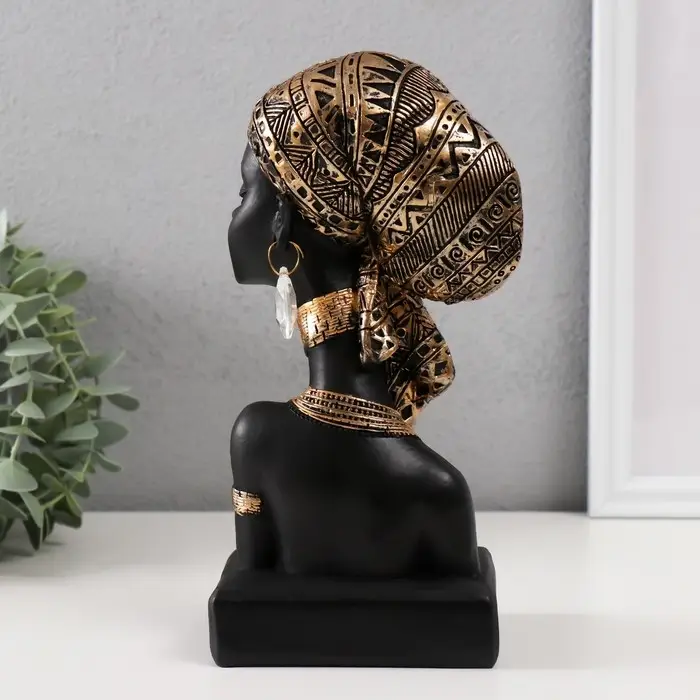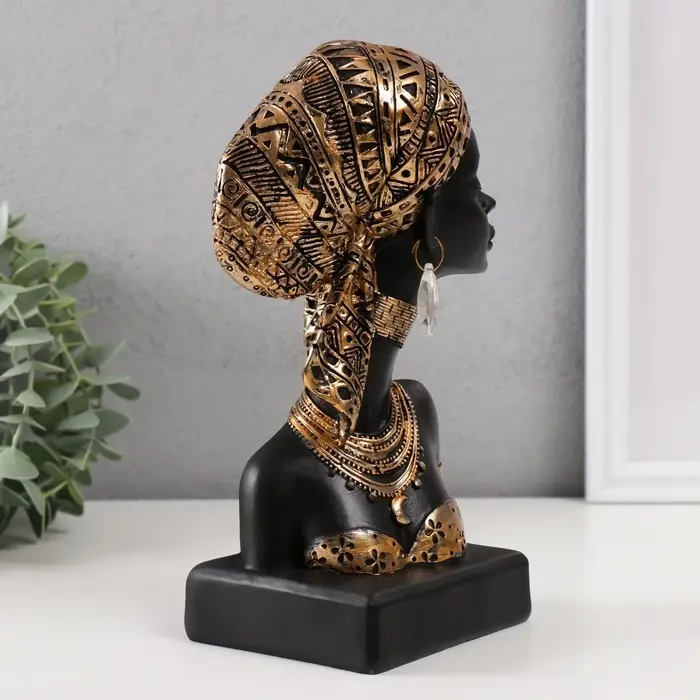 Сувенир полистоун бюст "Африканка в косынке с узорами" золото 12х9х22 см