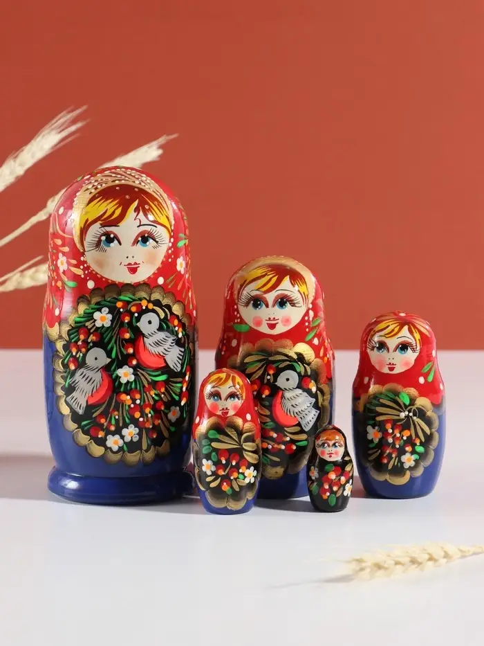 Раскройте волшебство русской традиции с этим очаровательным набором, где каждая куколка — словно маленькое чудо, спрятанное внутри другого. Пять деревянных красавиц с нежным рисунком птичек принесут в ваш дом тепло народного искусства и радость открытий.