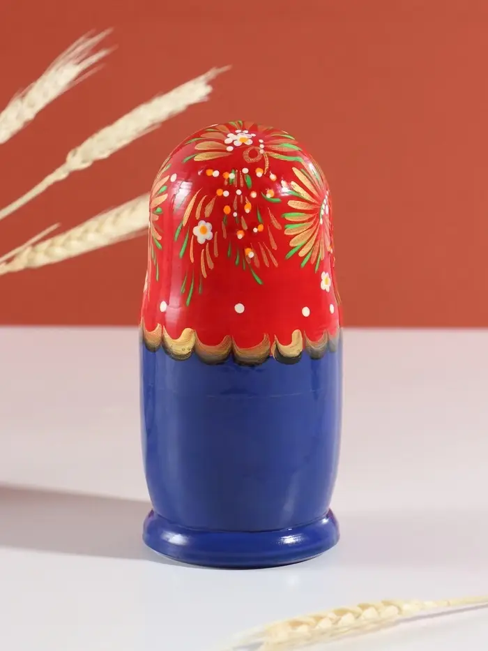 Идеальные пропорции классической формы и высота 15 см делают этот набор особенно удобным для детских рук, превращая знакомство с народным творчеством в увлекательную игру. Тонкая художественная роспись с изображением птиц — символ счастья и добрых вестей в русской культуре.