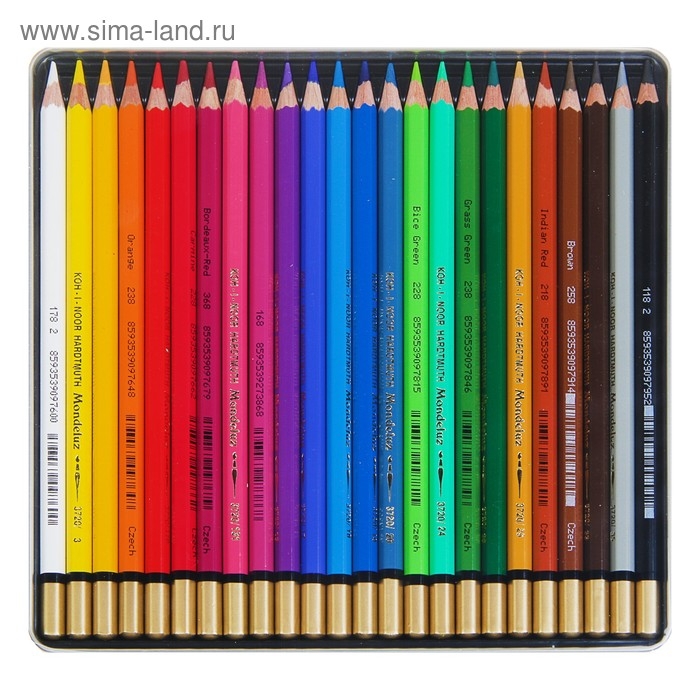 Карандаши акварельные набор 24 цвета, Koh-I-Noor Mondeluz 3724, в металлическом пенале