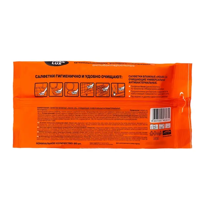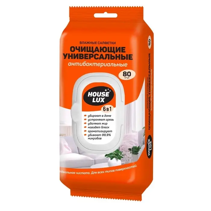 Влажные салфетки House Lux, антибактериальные, 6 in 1, 80 шт.