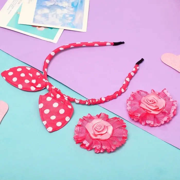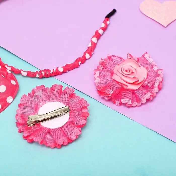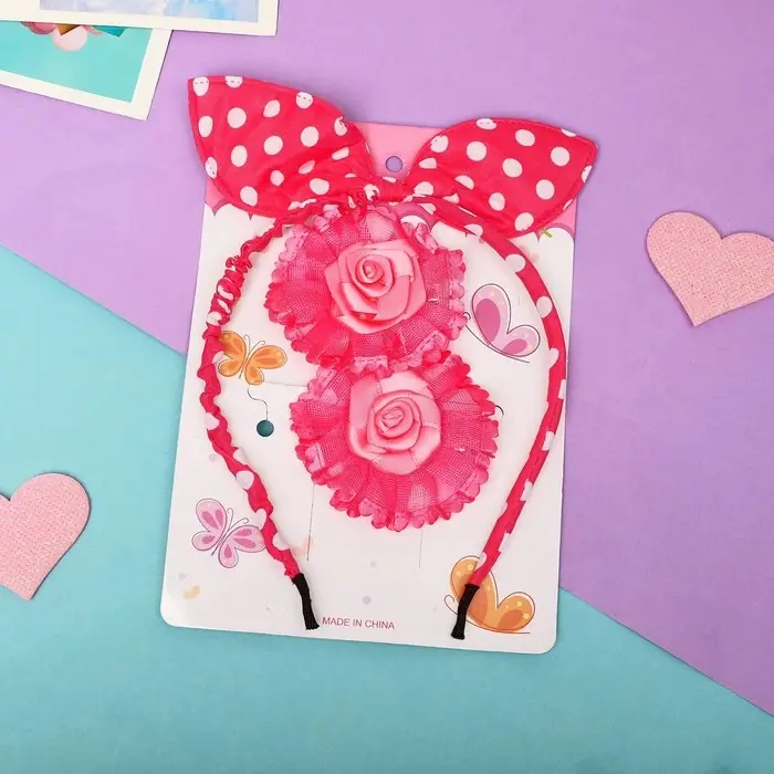 Набор для волос "Солоха" (ободок, 2 зажима) розочки, розовый