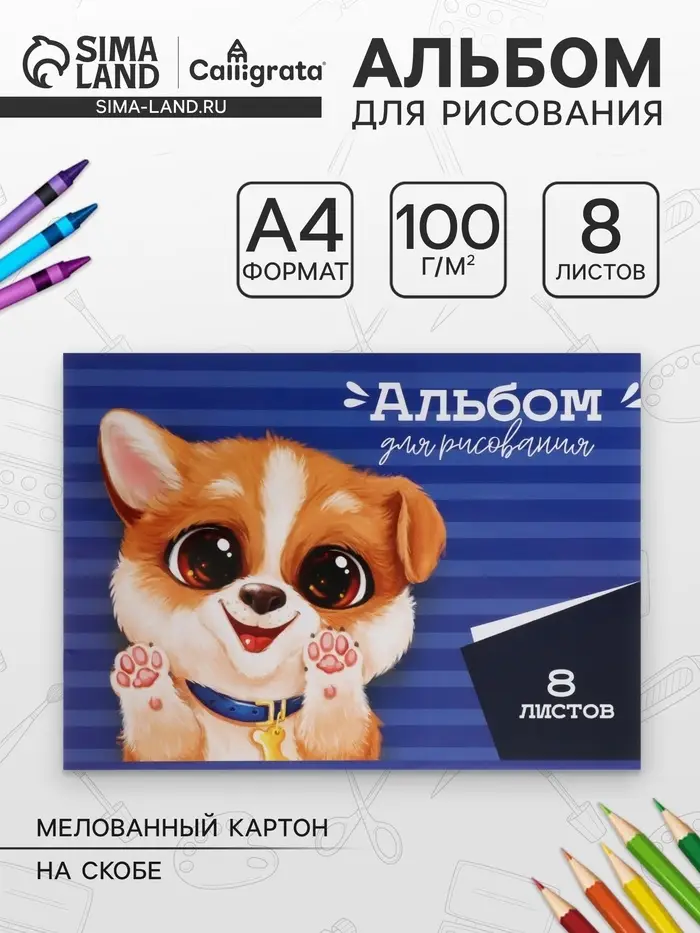 Альбом для рисования А4, Calligrata, 8 листов на скрепке, МИКС