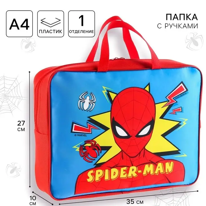 Папка с ручками текстильная А4, 350х270х100 мм, Человек-паук