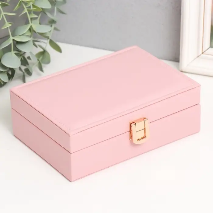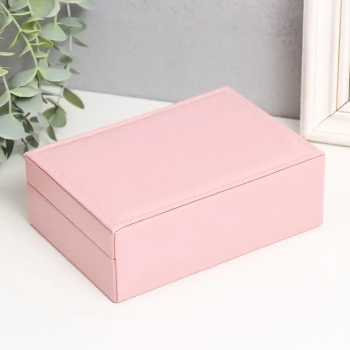 Шкатулка кожзам для украшений "Матовая гладь. Прямоугольная" розовая 16х11,5х5,5 см