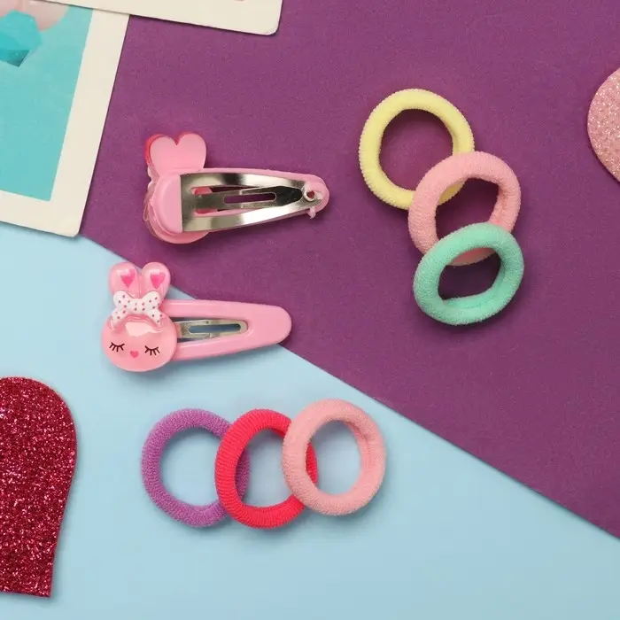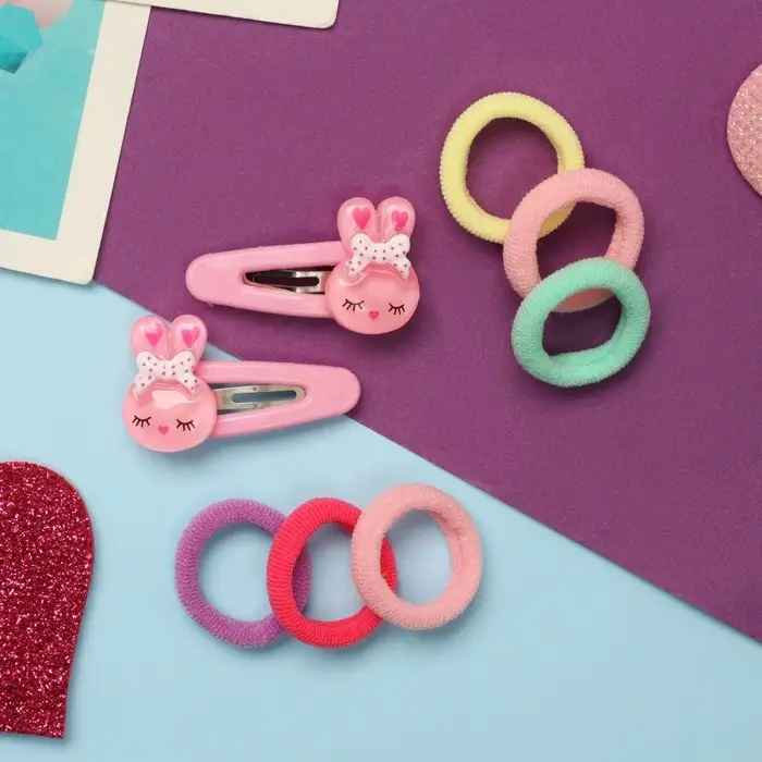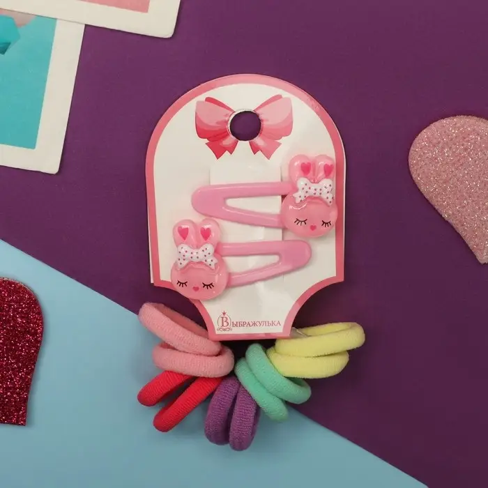 Набор для волос «Карамель», 10 резинок 1.5 см, 2 невидимки 3.5 см, зайки, розовый