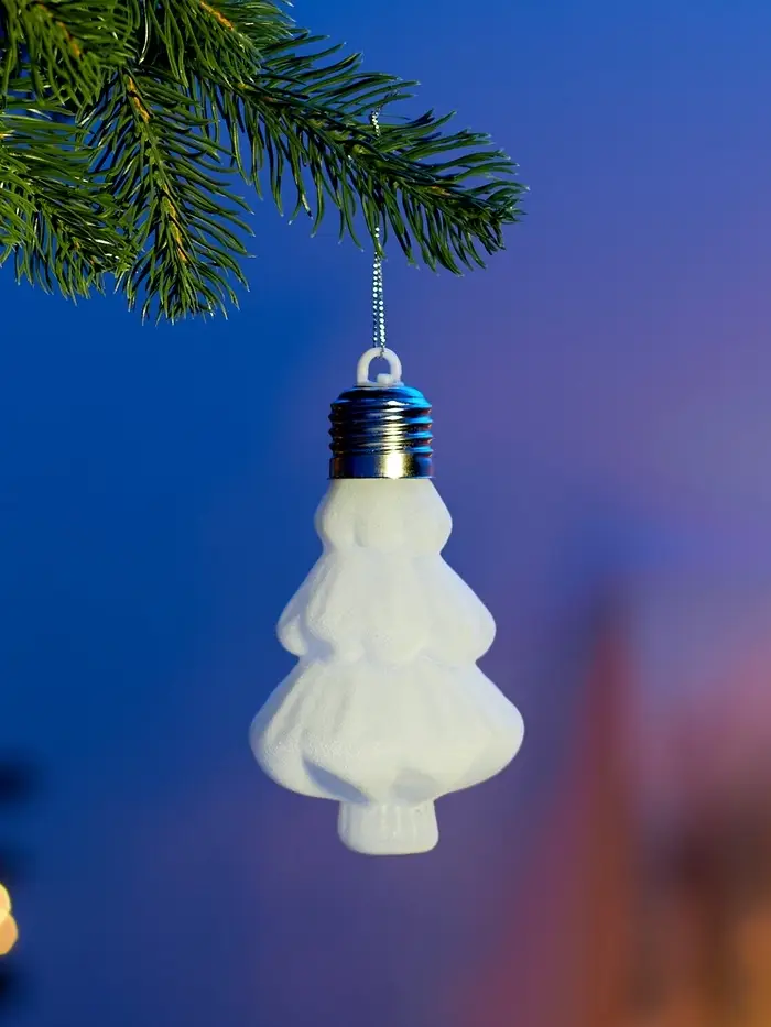 Елочный шар "Бархатная елочка" 12х8 см, 1 LED, LR44x3 (в компл.), Т/БЕЛЫЙ
