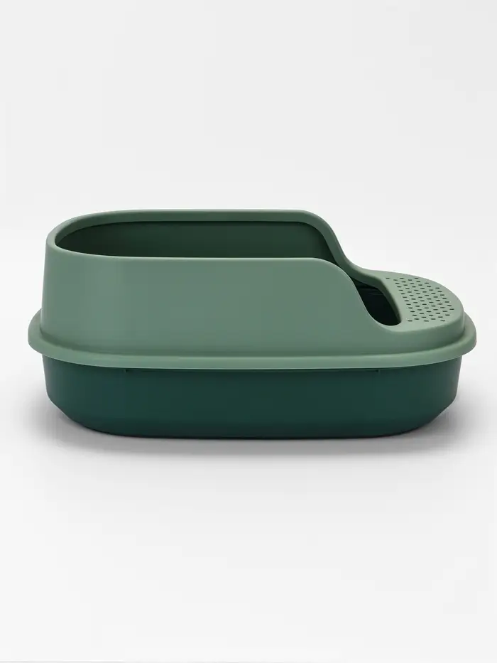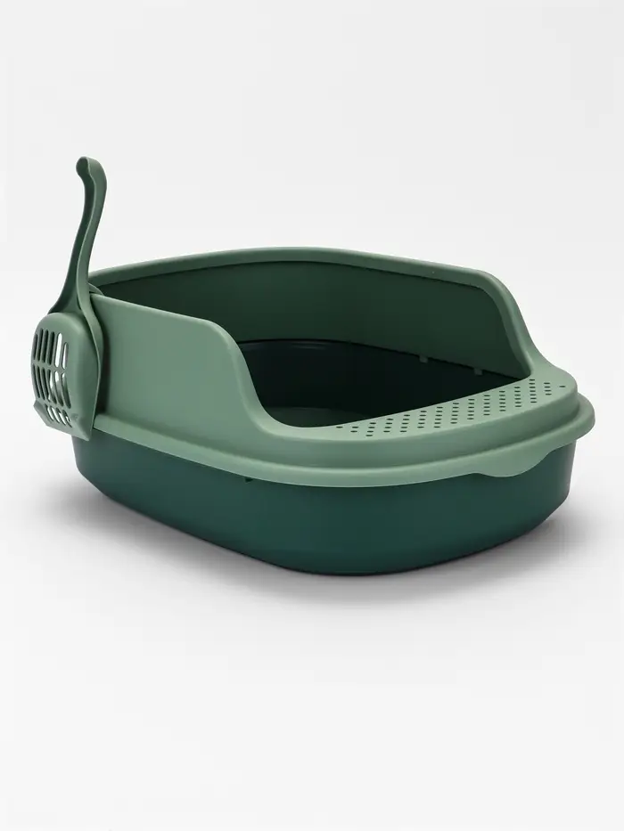 Лоток для кошек Фур-Мур 48×35.5 cм с высоким бортом + совок, Soft-touch, изумруд