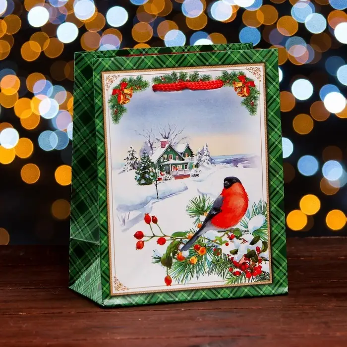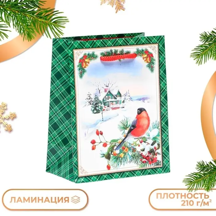 Пакет подарочный "Снегирь на ветке", 11,5 х 14,5 х 6,5 см.