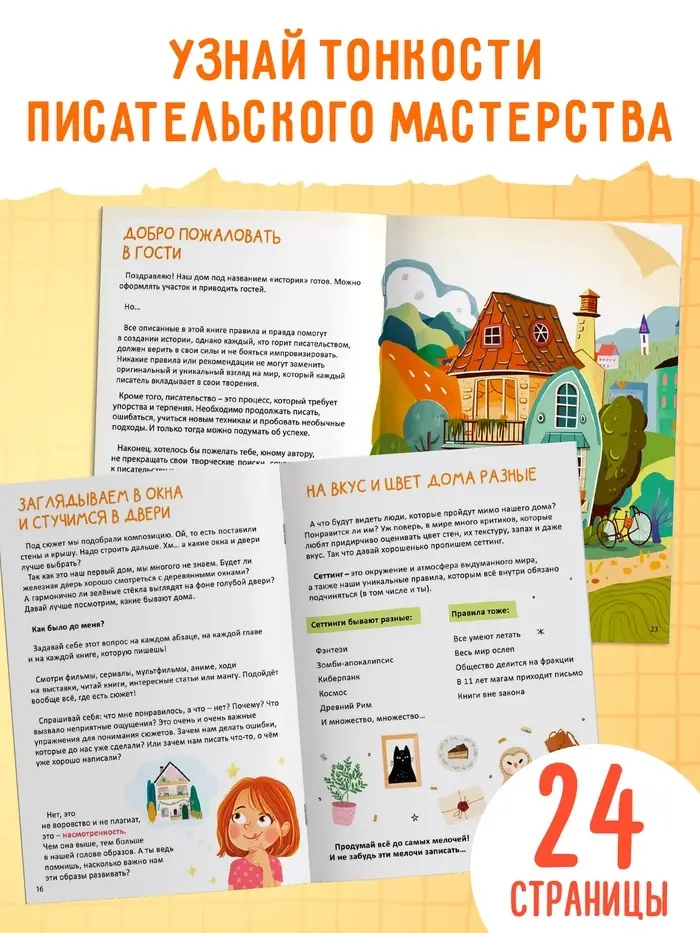 - 24 страницы с чёткими рекомендациями и упражнениями для начинающих авторов.