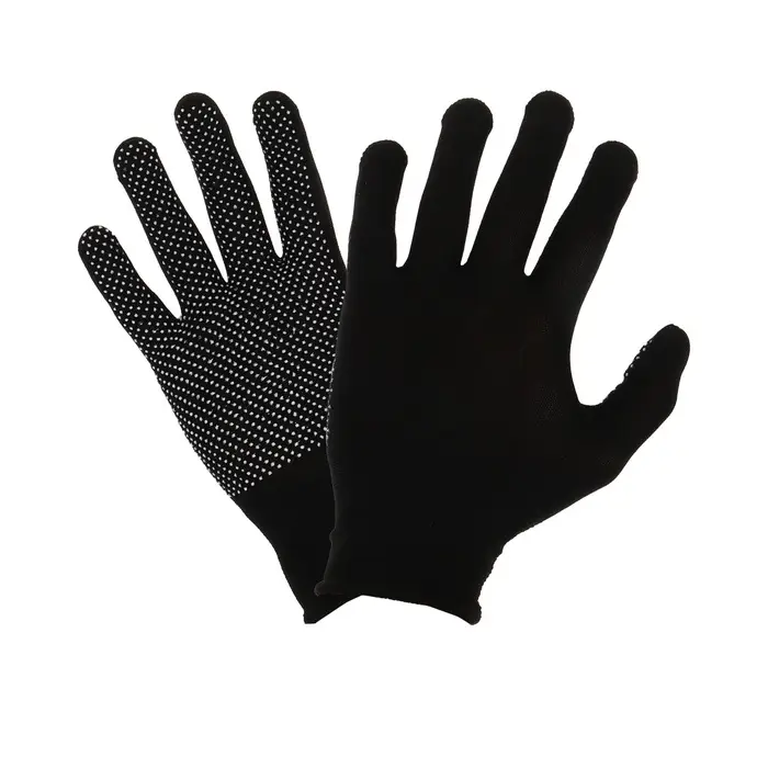 Перчатки садовые, х/б, с нейлоновой нитью, с ПВХ точками, размер 9, чёрные, Greengo