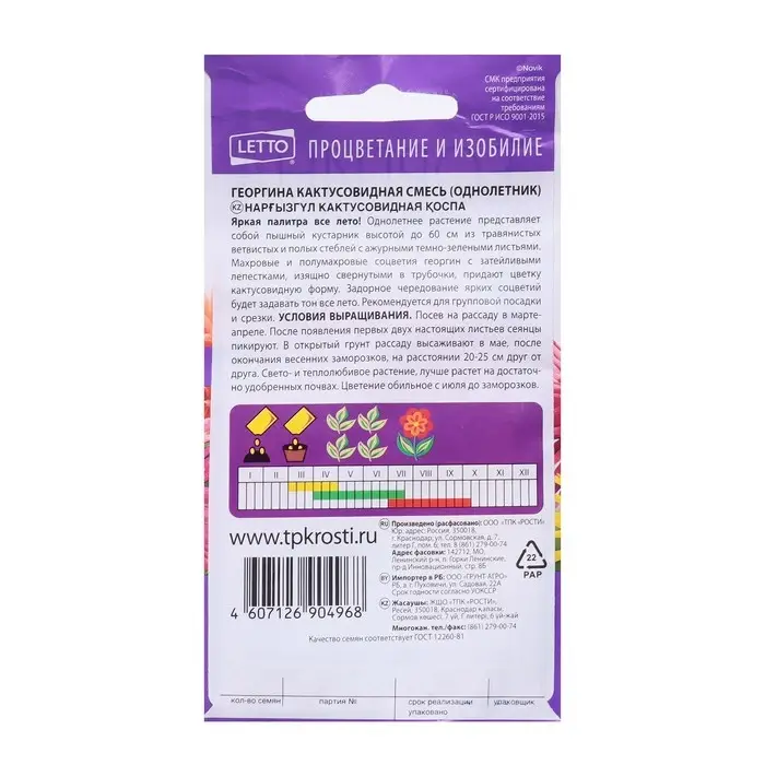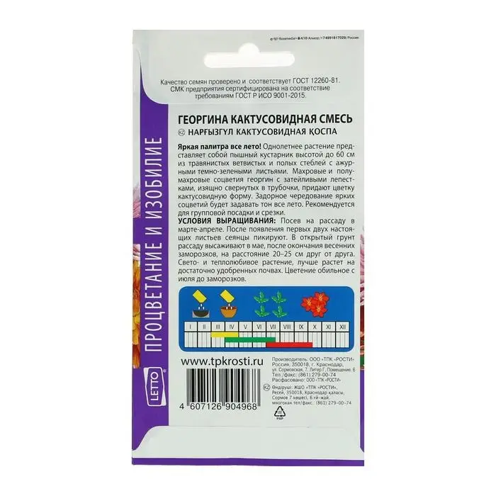 Семена цветов Георгина Кактусовидная смесь, О, 0,2 г