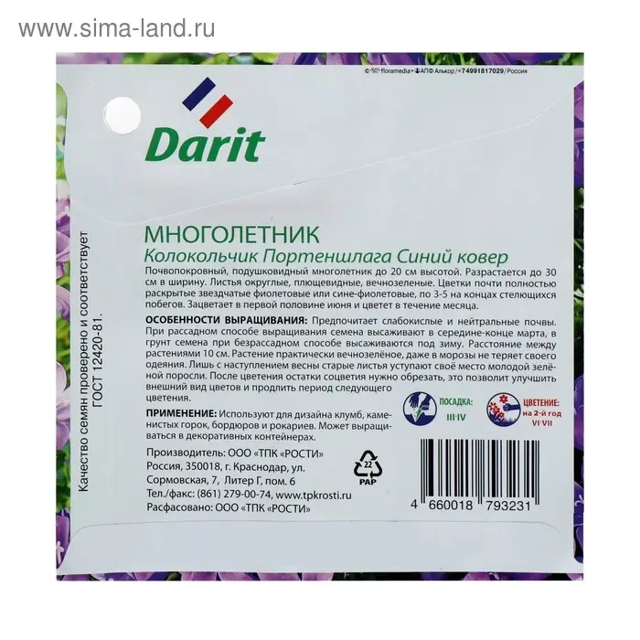 Семена цветов Колокольчик "Портеншлага", "Синий ковер", 0,01 г