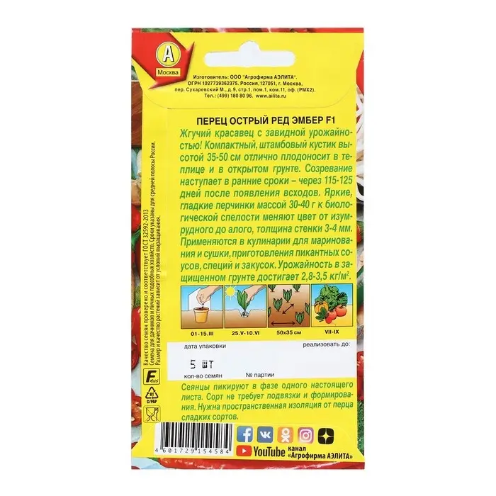 Жгучий красавец с завидной урожайностью! Компактный, штамбовый кустик высотой 35-50 см отлично плодоносит в теплице и в открытом грунте. Созревание наступает в ранние сроки – через 115-125 дней после появления всходов. Яркие, гладкие перчинки массой 30-40 г к биологической спелости меняют цвет от изумрудного до алого, толщина стенки 3-4 мм. Применяются в кулинарии для маринования и сушки, приготовления пикантных соусов, специй и закусок. Урожайность в защищенном грунте достигает 2,8-3,5 кг/м2.
