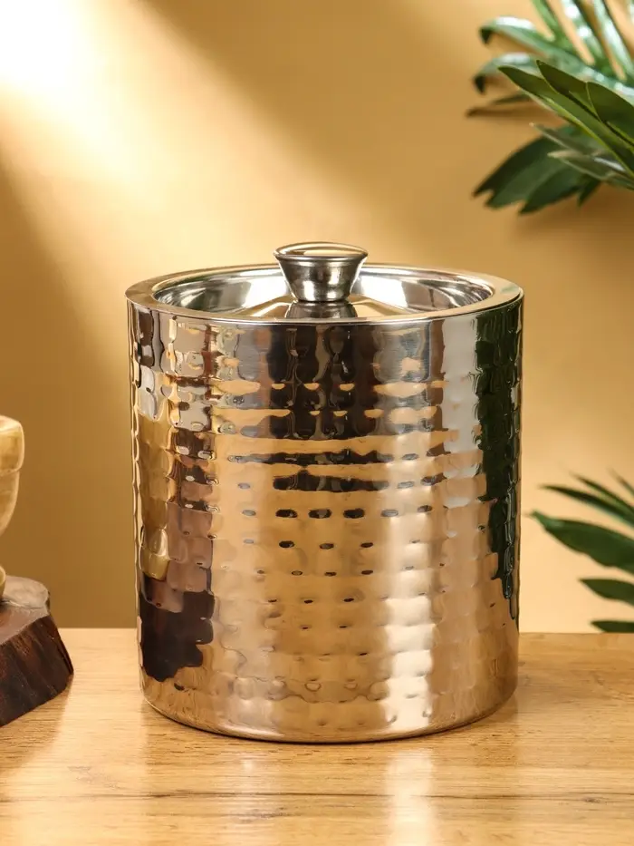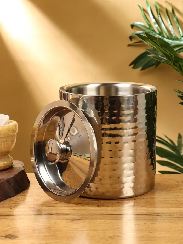 Ведро для льда с крышкой "Серебро" нержавеющая сталь 14,5х14,5х18 см