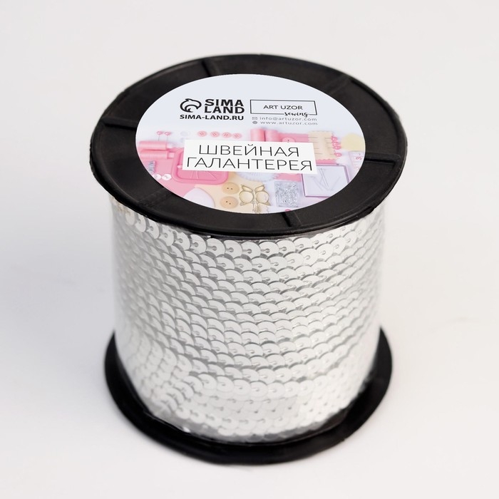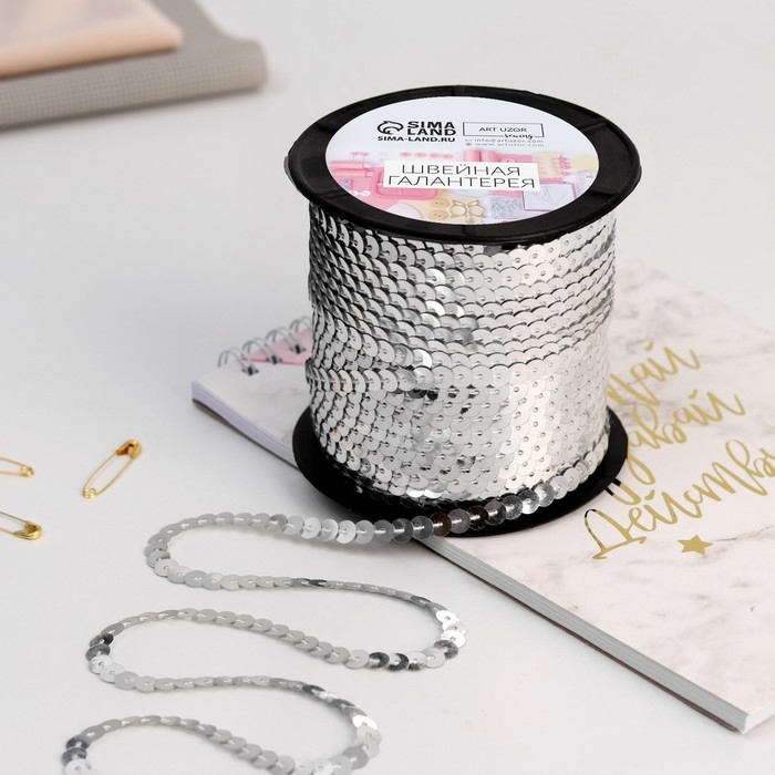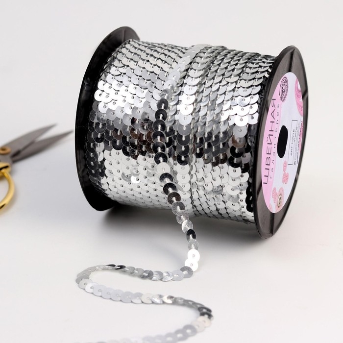 Пайетки на нити, 6 мм, 91 ± 1 м, цвет серебряный №1