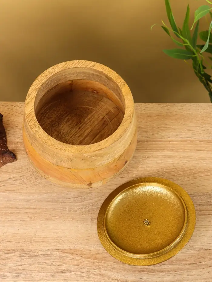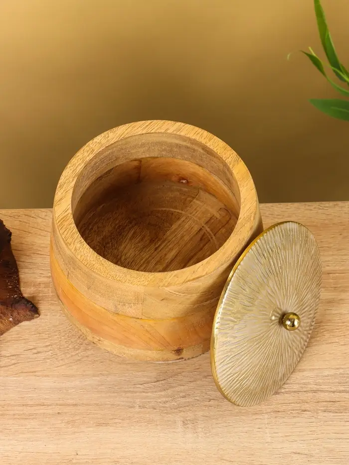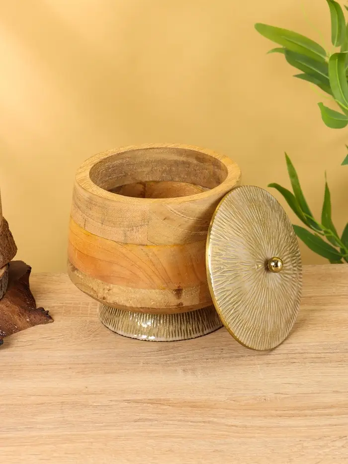 Конфетница с крышкой "Грильяж" алюминиевая с манговым деревом 17,5х17,5х18 см