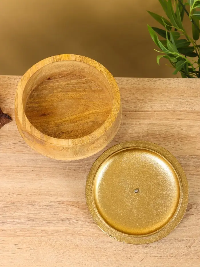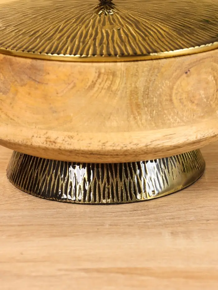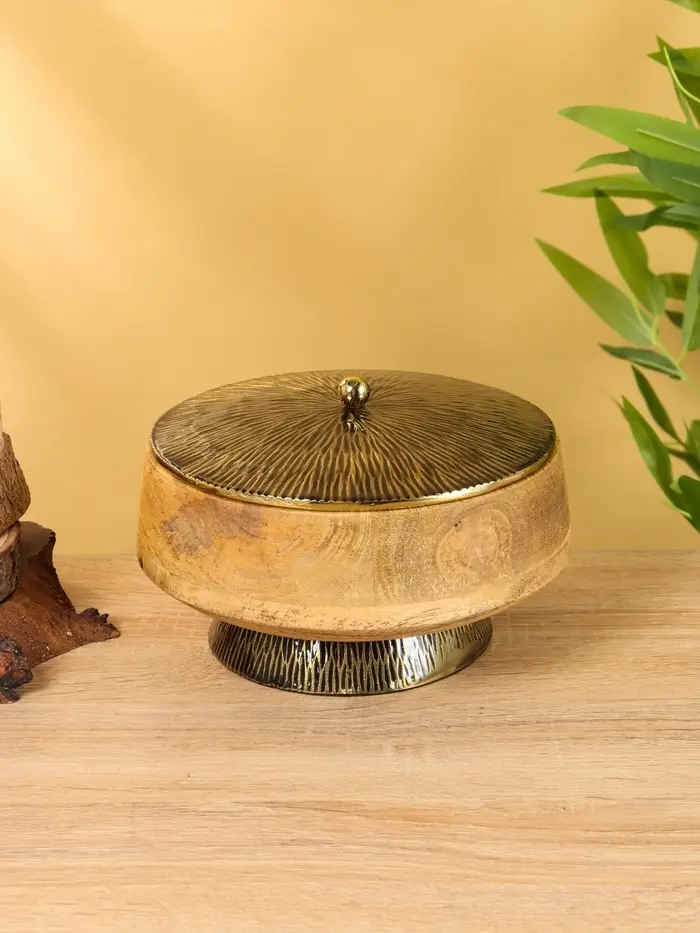 Конфетница с крышкой "Щербет" алюминиевая с манговым деревом 19х19х12 см
