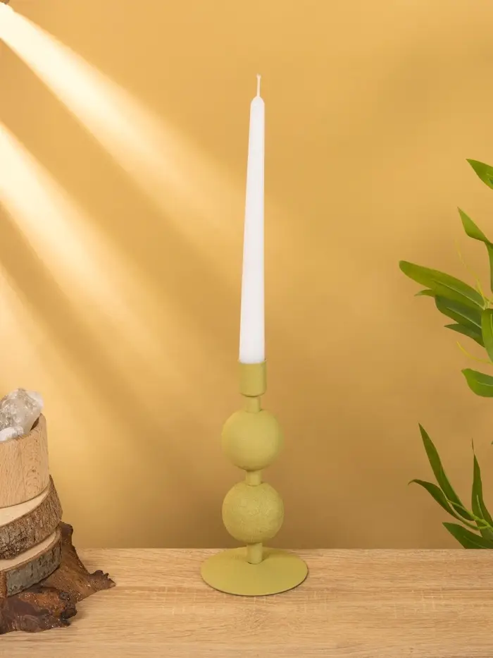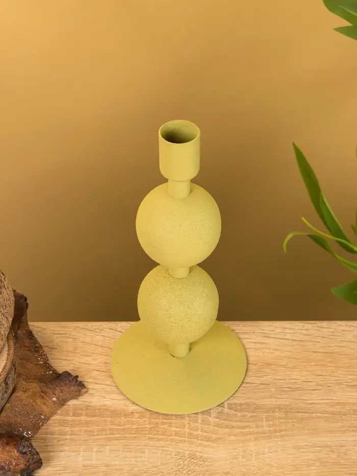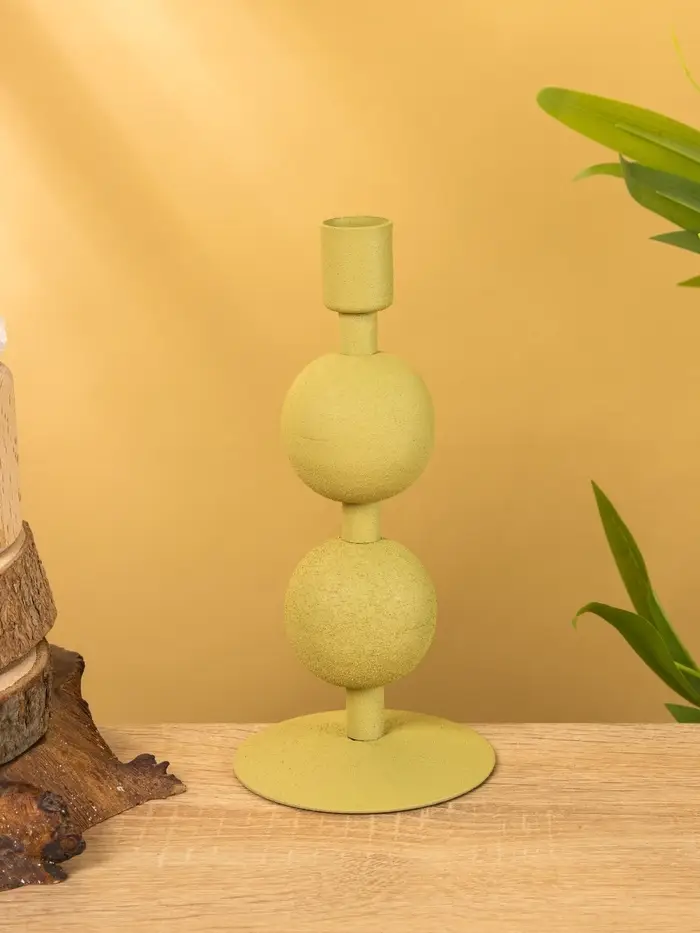 Подсвечник на 1 свечу текстурный "Оливковый" с 2 сферами 8,5х8,5х18 см