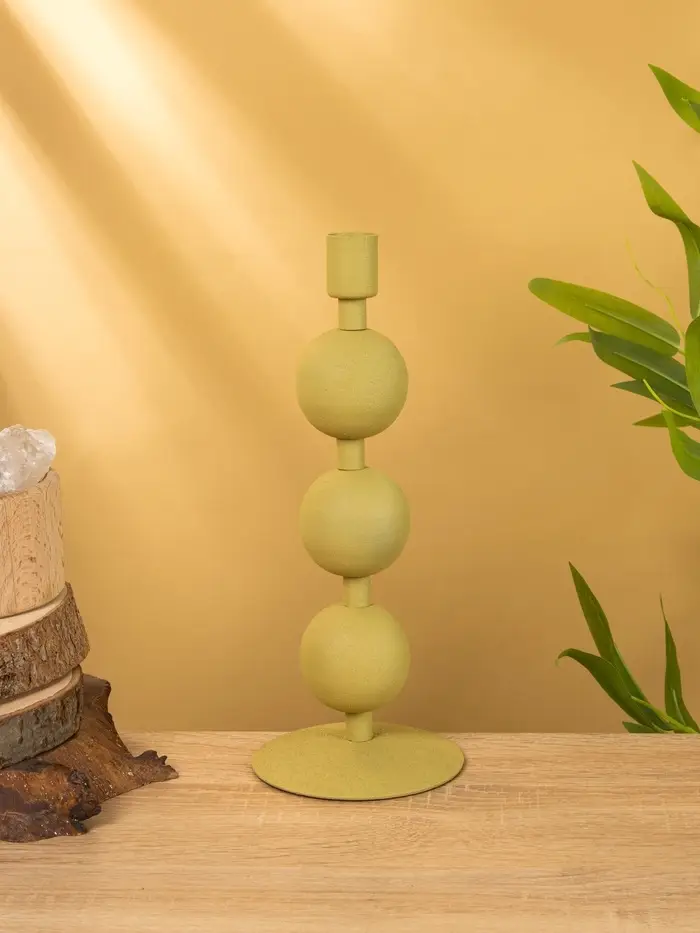 Подсвечник на 1 свечу текстурный "Оливковый" с 3 сферами 10х10х25 см