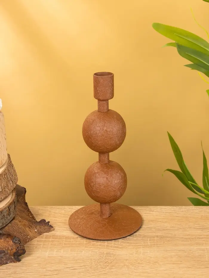 Подсвечник на 1 свечу «Бисквит», с 2 сферами, 8.5×8.5×18 +/- 1 см
