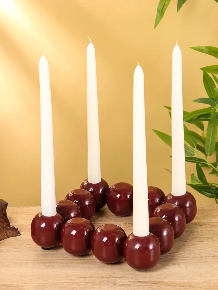 Подсвечник на 4 свечи «Бусы», с 12 сферами, 20.5×20.5×5.5 см, сливовый