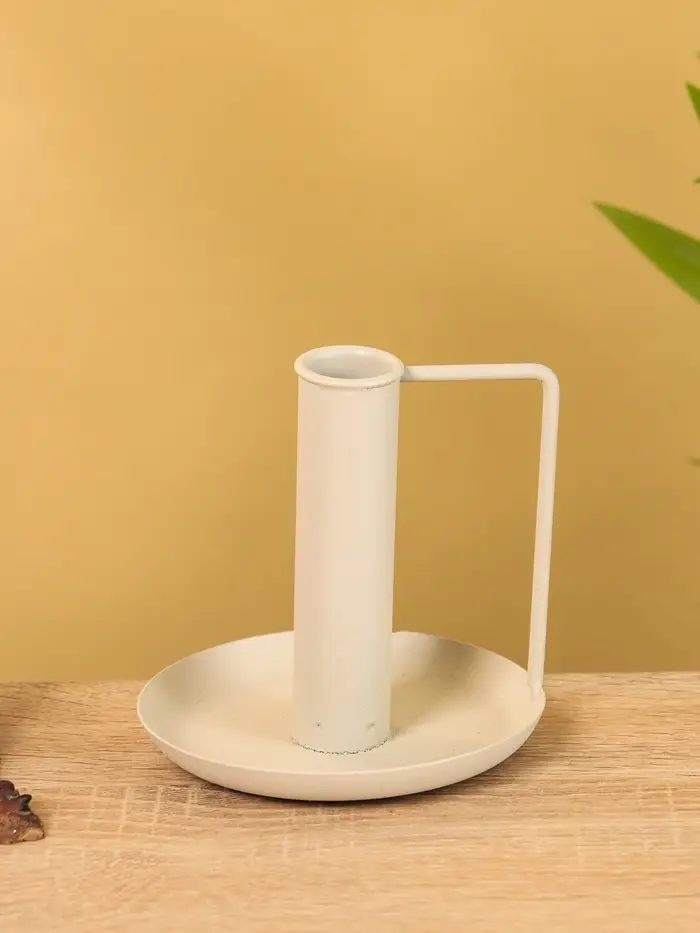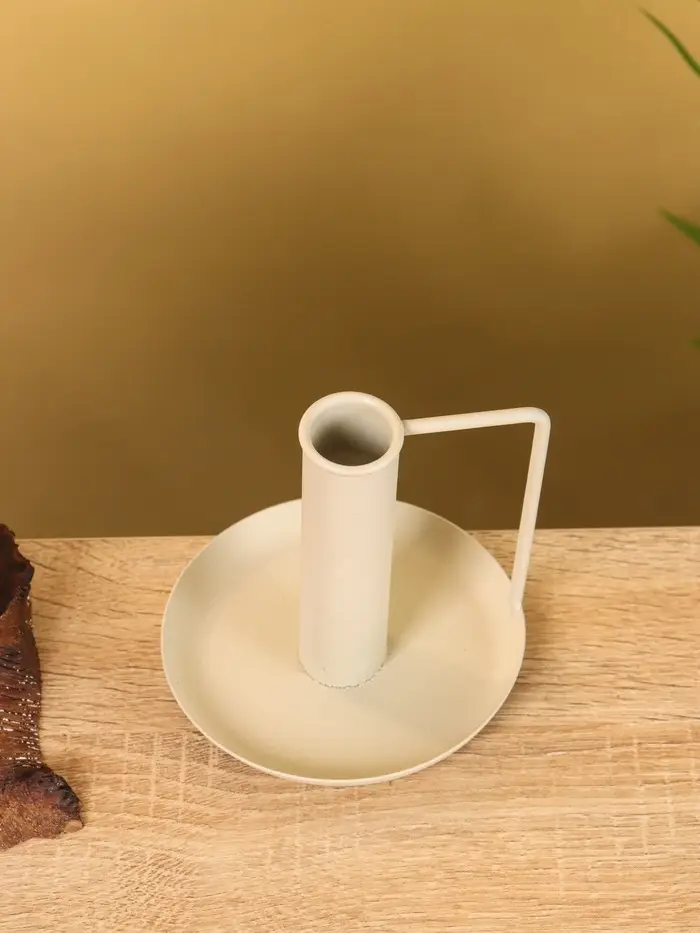 Подсвечник на 1 свечу текстурный с ручкой и блюдцем «Фисташка», 10×10×9.5 +/- 0.5 см
