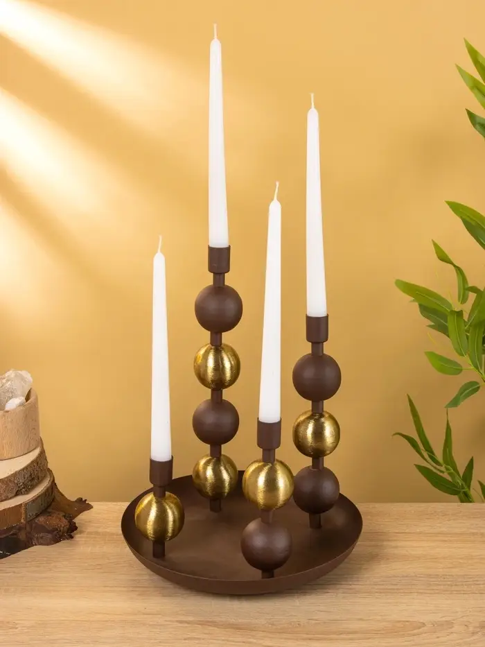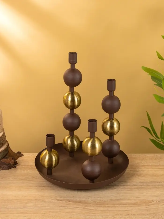 4 подсвечника на тарелке со сферами, шоколад 25,5х22,5х32 см