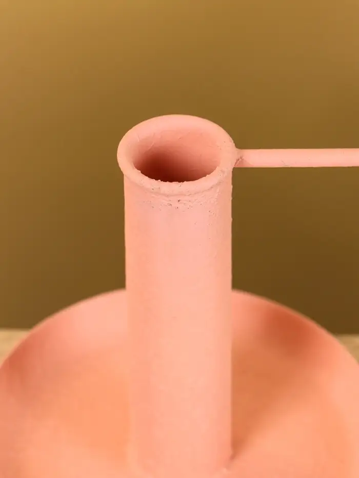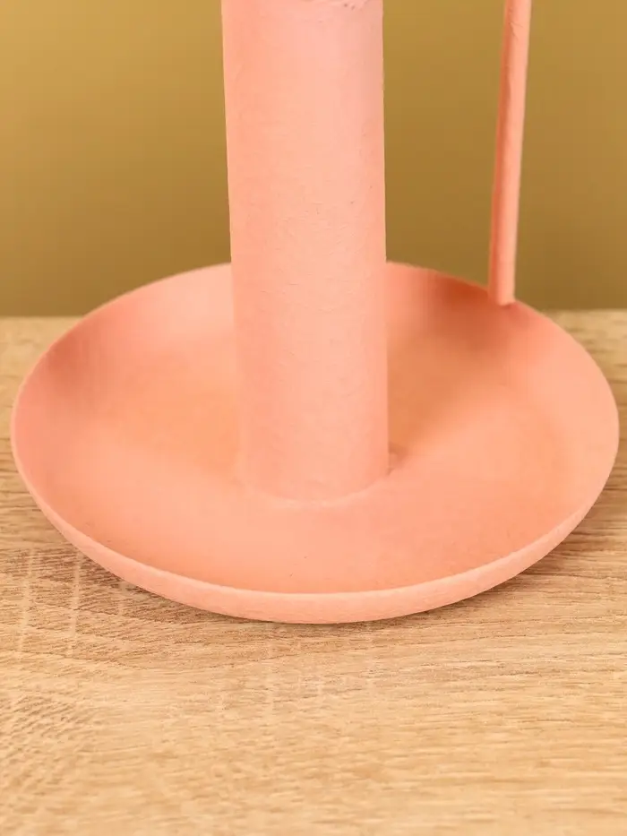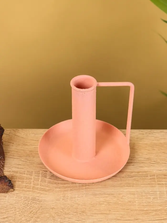 Подсвечник на 1 свечу текстурный с ручкой и блюдцем «Пудровый розовый», 10×10×9.5 +/- 0.5 см