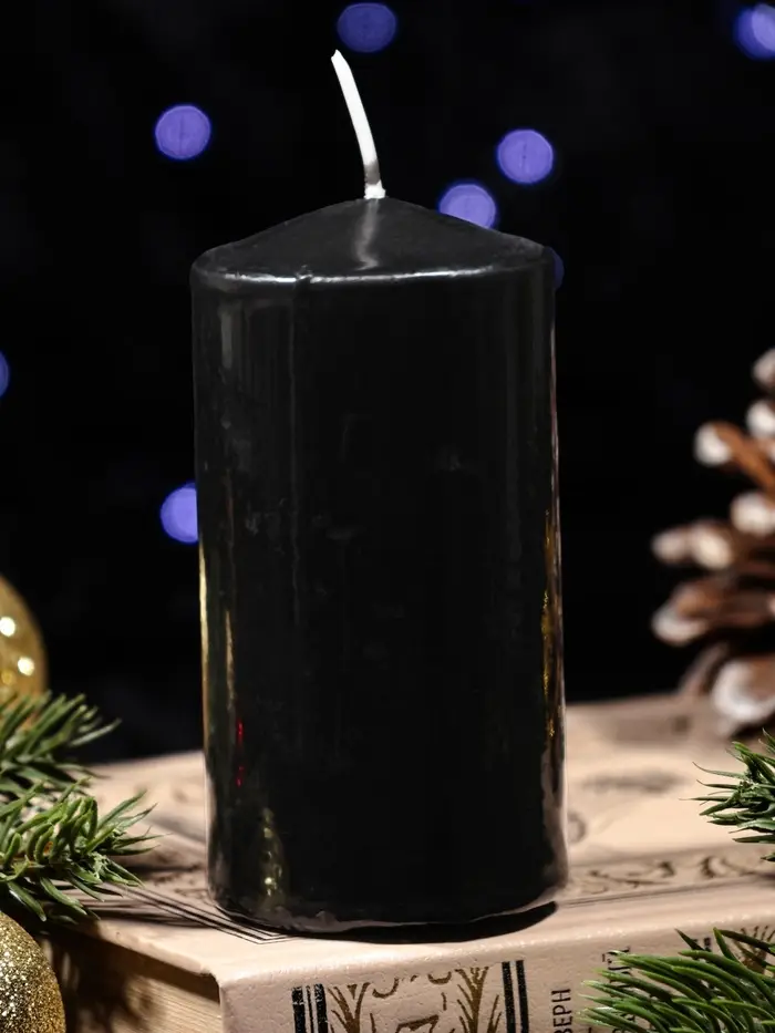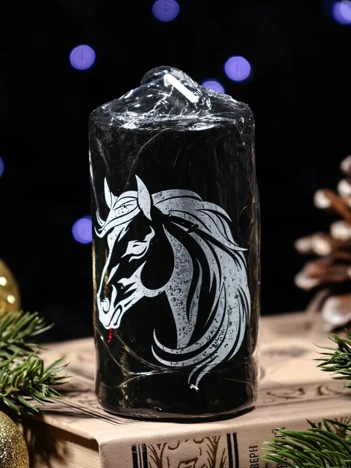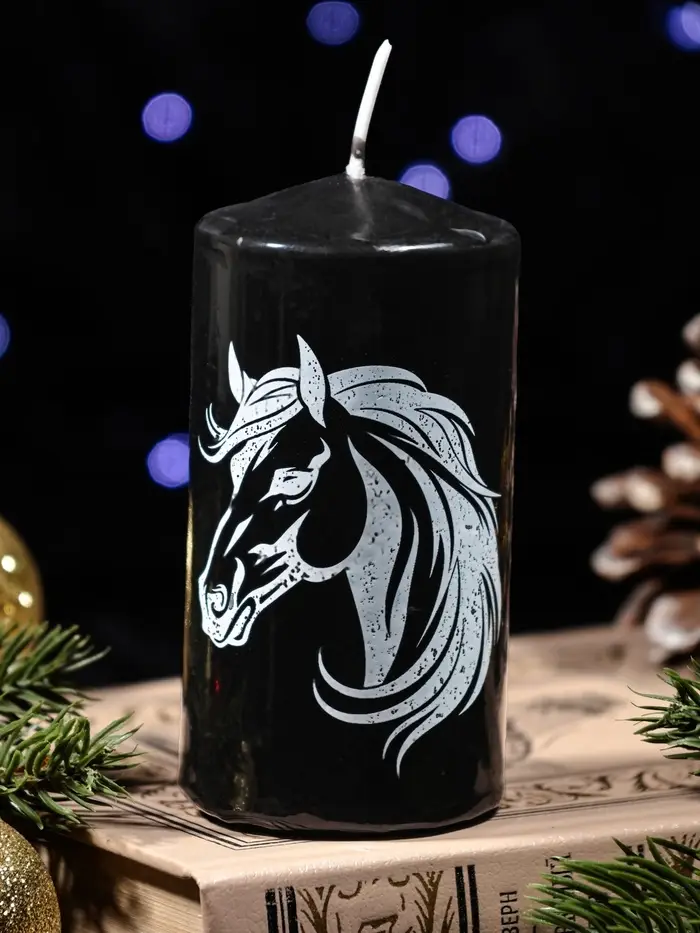 Свеча столб 50*100 мм с накаткой "Символ года" , Лошадь, черная