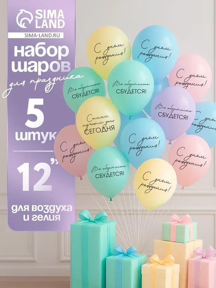 Воздушный шар латексный 12" «Всё обязательно сбудется», макаруны: голубой, желтый, сиреневый, мятный