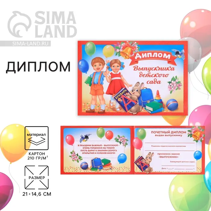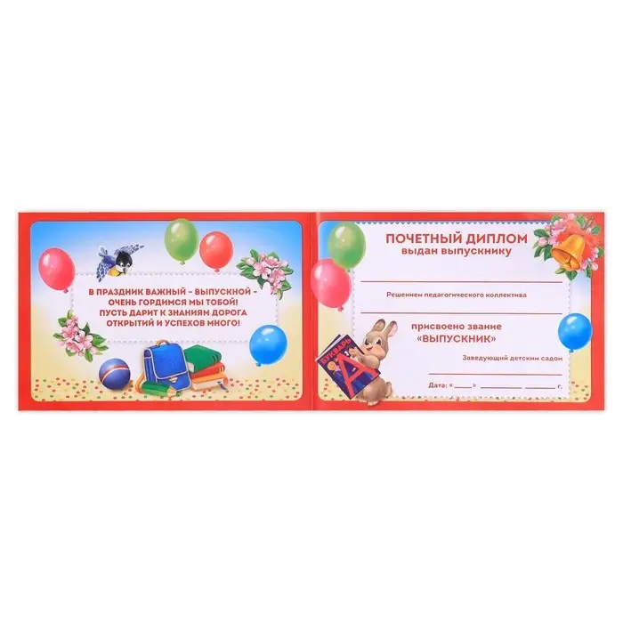 Такой диплом не оставит ни одного ребенка равнодушным, поможет сделать выпускной особенно торжественным и останется на долгую память!