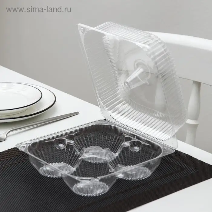 Контейнер одноразовый с неразъёмной крышкой ИП-2, для кондитерских изделий, пластик, 4 секции, 18.6×8.1 см, прозрачный