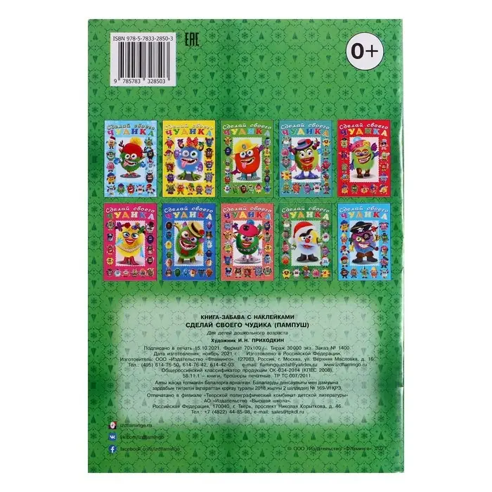Сделай своего чудика «Пампуш», новогодняя книга с наклейками