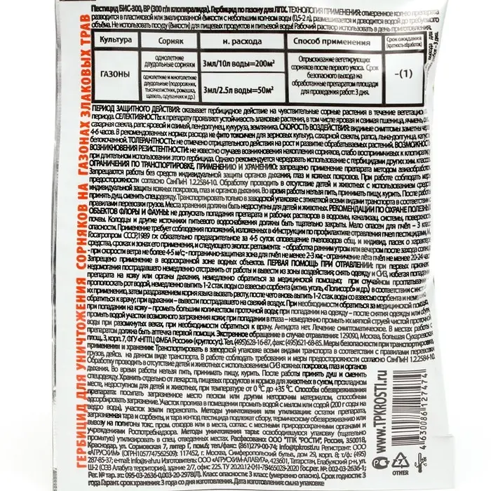 Гербицид избирательного действия. Для борьбы с сорняками (уничтожение однолетние двудольные и многолетние сорняки на посадках земляники и газонах).