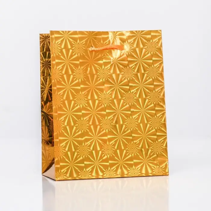 Пакет подарочный, фольгированный, «Золото» 14×11×5 см.
