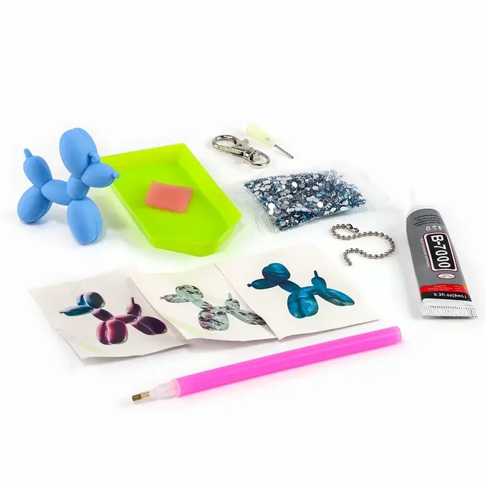 Алмазная мозаика на брелоке "Собачка" светло-голубой