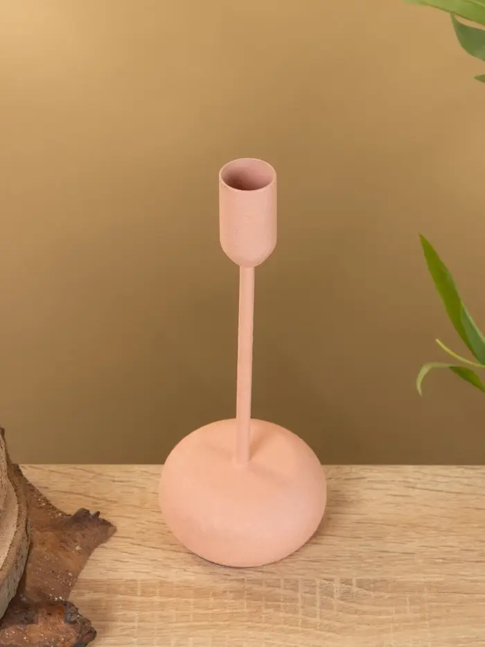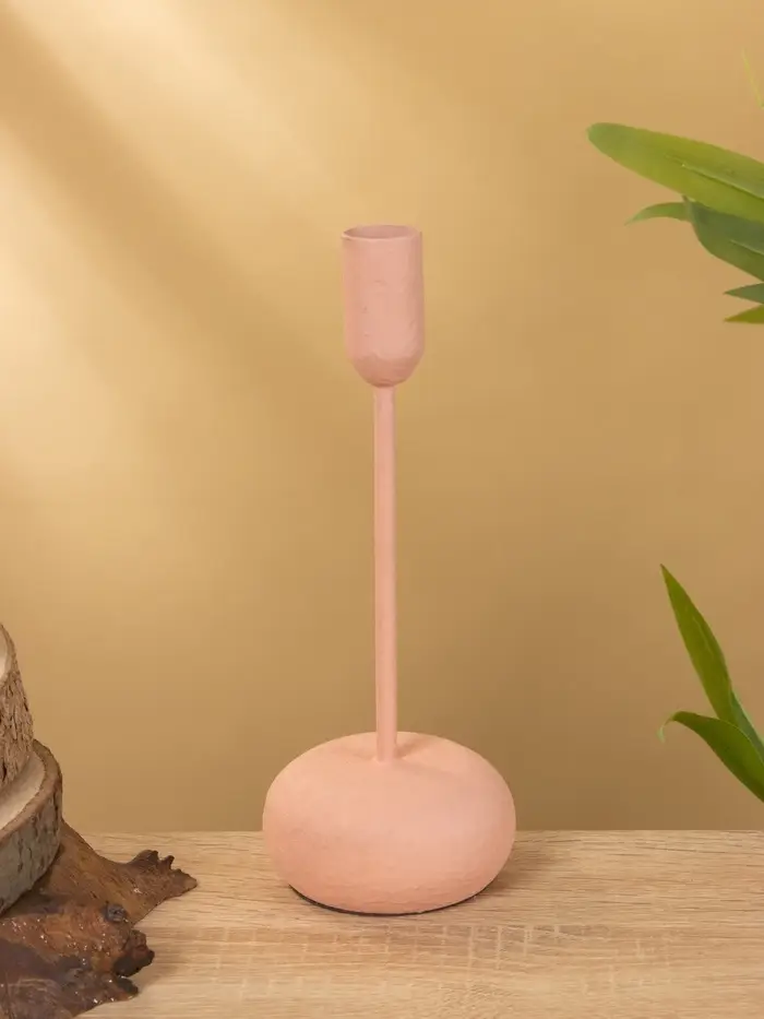 Подсвечник на 1 свечу текстурный "Пудровый розовый" 8х8х20 см