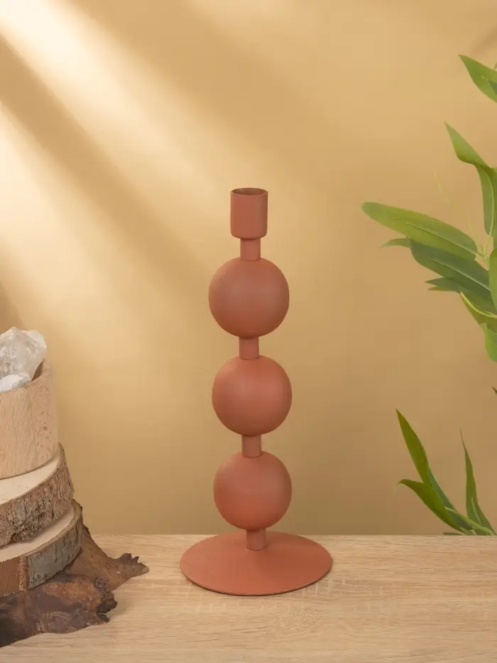 Подсвечник на 1 свечу текстурный "Терракотовый" с 3 сферами 10х10х25 см