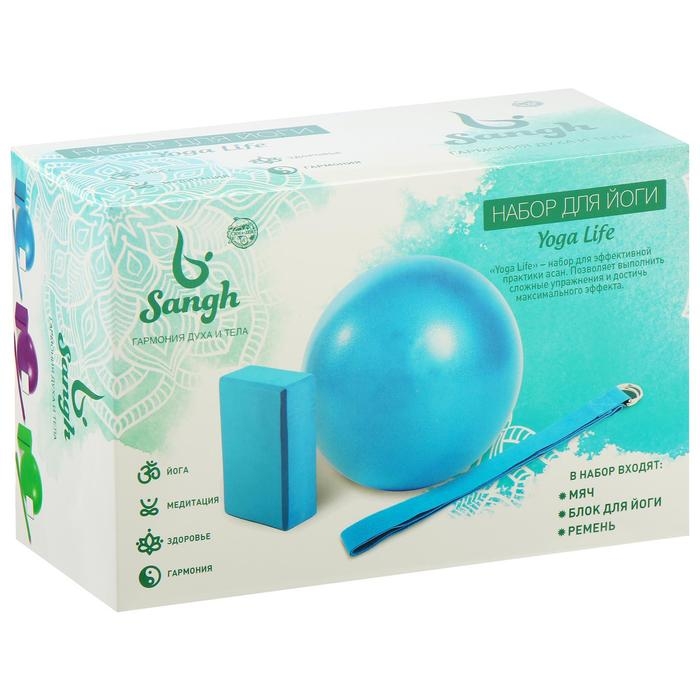 Набор для йоги Sangh: блок, ремень, мяч, цвет фиолетовый