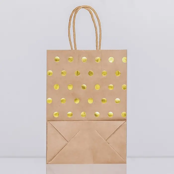 Пакет крафт с золотым тиснением, круглая ручка, 15 х 21 х 8 см, 120 г
