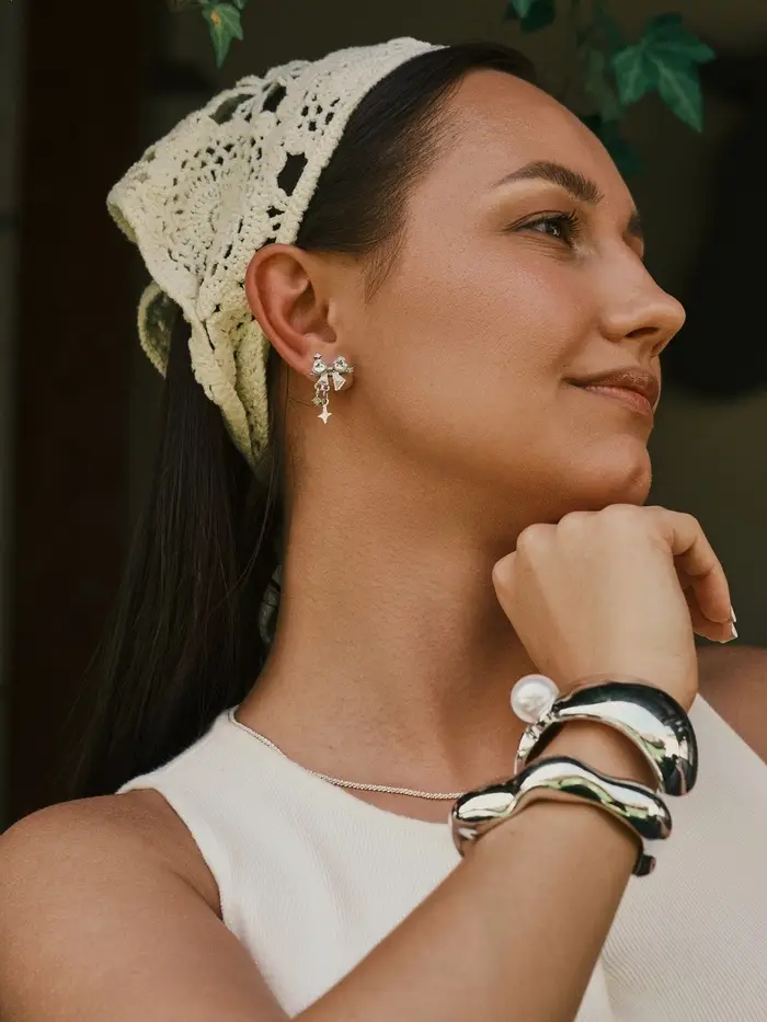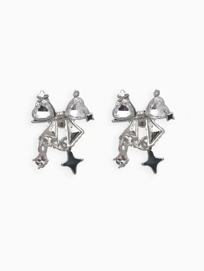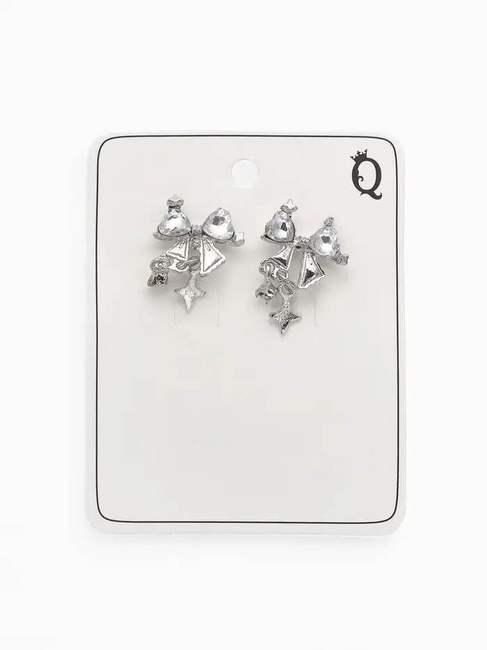 Серьги «Бантик» со звёздочкой, белый в серебре